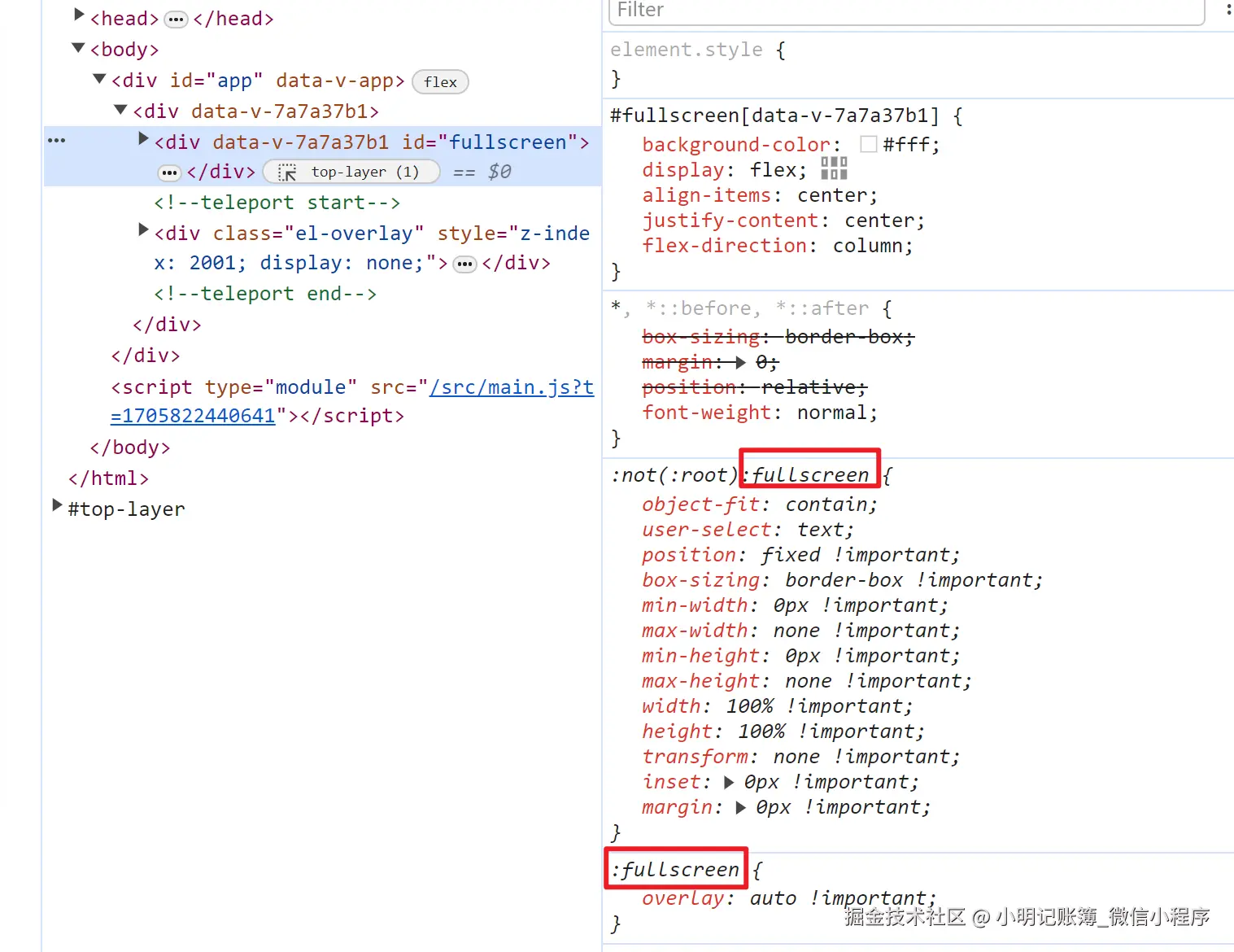 💥 如果想改变全屏状态时的样式,首先可以在全屏时添加一个calss,此外也可以使用:full-screen伪类,大部分浏览器都支持,检查全屏时元素,也是有使用:full-screen伪类的。