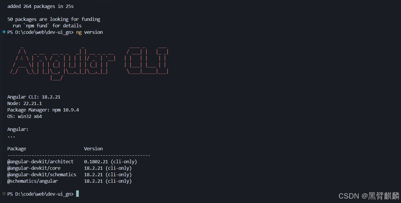 首先需要安装Angular,官网当前支持的Angular版本 ^18.0.0。先全局安装angular