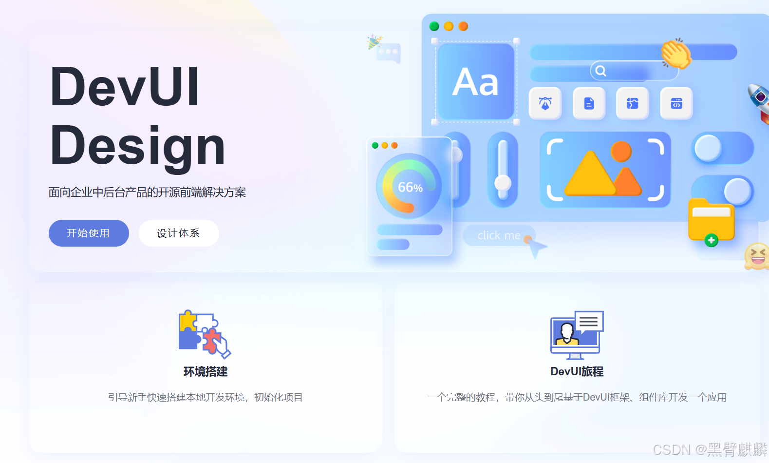 - DevUI 为 Web 应用提供了丰富的基础 UI 组件。