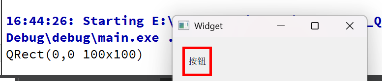 (3)运行程序, 可以看到, 当前按钮的边框被外边距挤的缩小了. 但是获取到的按钮的Geometry 是不变的.