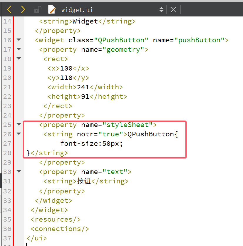 (4)这种方式设置样式, 样式内容会被以 xml 格式记录到 ui 文件中。