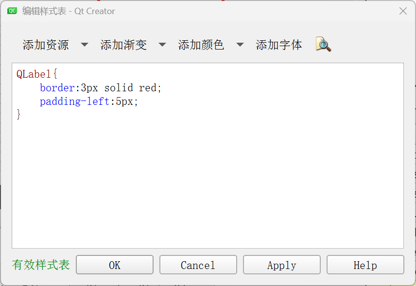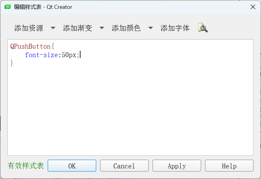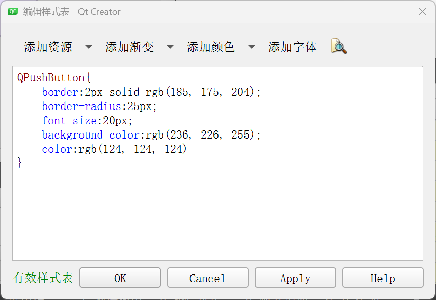 通过这里就可以编写QSS样式了,在这里的修改会被编辑到ui文件中,程序运行时自动生效,而且这里还能进行实时预览。