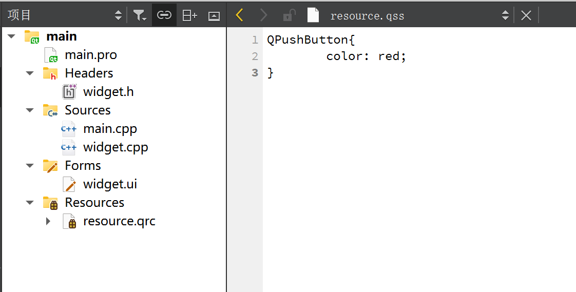 (3) 使用Qt Creator 打开 resource.qss , 编写内容