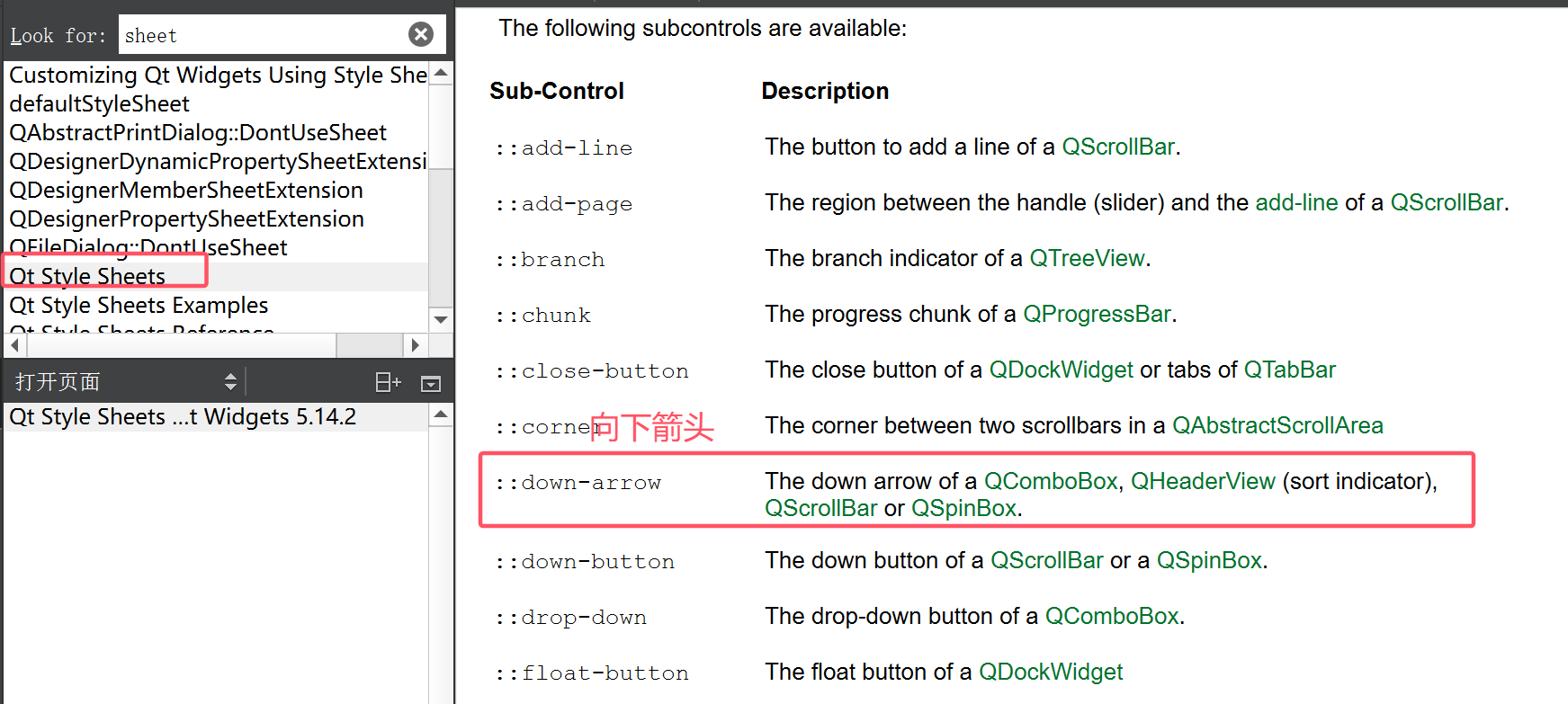 Qt Style Sheets Reference中List of Sub-Controls章节
