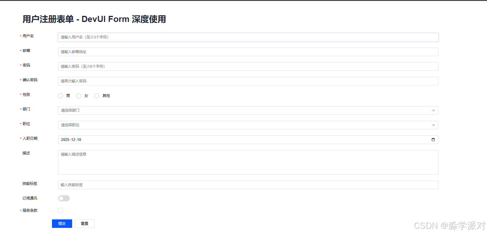 Form 表单组件是 Web 应用中最常见的交互方式,几乎每个应用都需要处理用户输入。然而,很多开发者在使用表单时容易陷入坑点,如验证逻辑混乱、数据绑定失效、性能低下等。本文通过 DevUI Form 的实战案例,深入讲解表单组件的深度用法和常见避坑技巧。