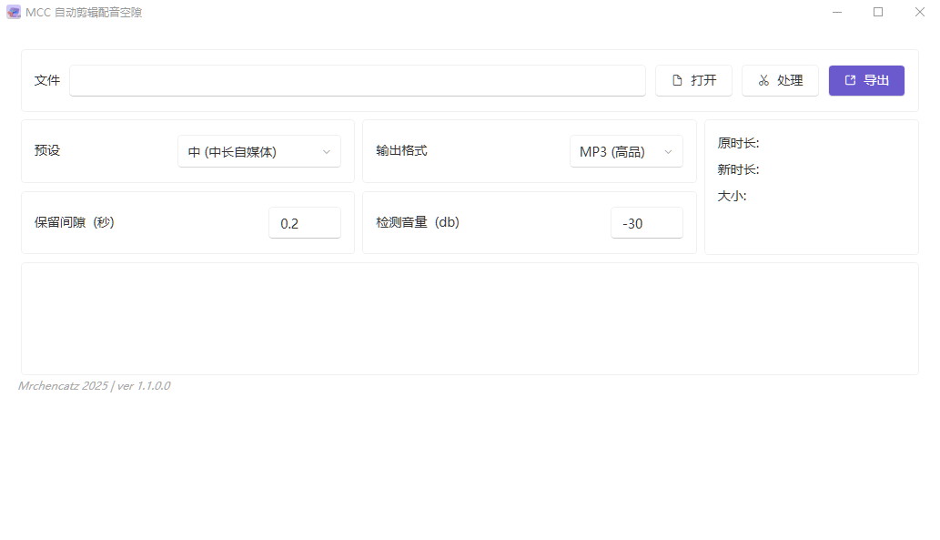 MCC支持导入音频或视频文件进行自动化处理,但推荐使用纯音频文件以获得最佳效果。软件会自动分析波形中的静音区间,智能压缩气口间隙,输出格式默认为MP3。这种格式兼容性良好,能够适应抖音等主流平台的要求。