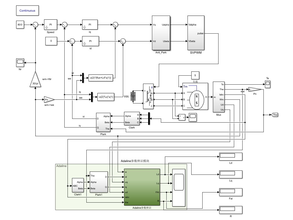 在永磁同步电机(PMSM)的控制领域中,参数辨识可是个至关重要的环节。准确获取电机的各项参数,如定子电阻、直轴电感、交轴电感以及磁链等,对于提升电机控制性能、优化运行效率都起着关键作用。今天咱们就来唠唠永磁同步电机参数辨识中的注入法参数辨识和自适应神经网络法参数辨识。