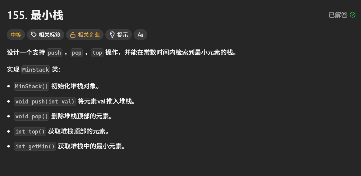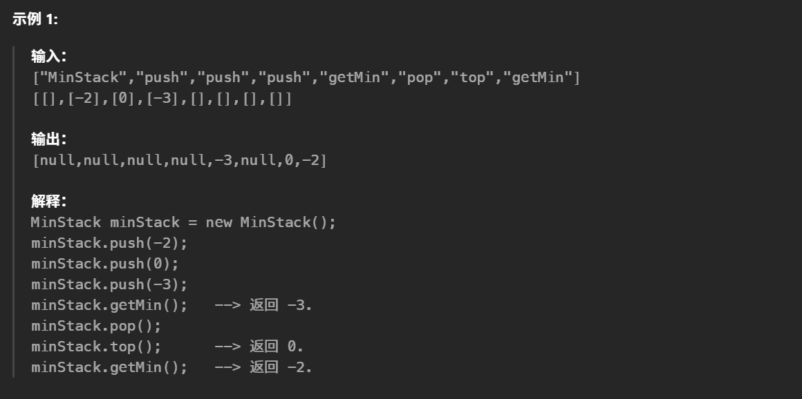题目链接:155. 最小栈 - 力扣(LeetCode)