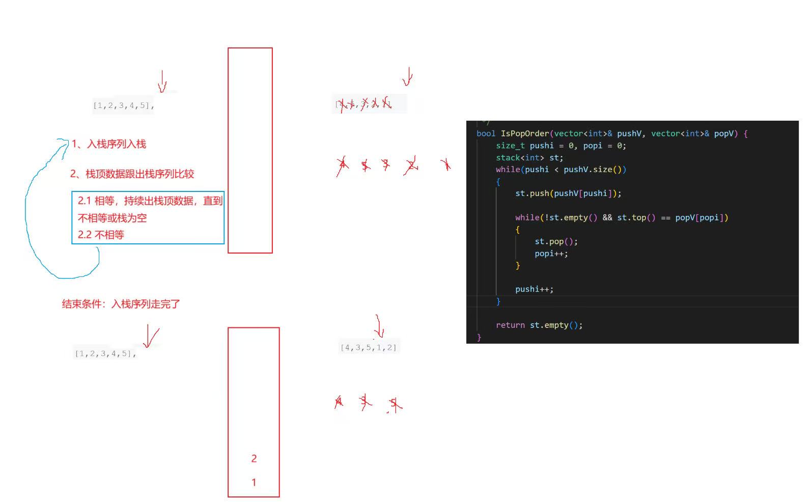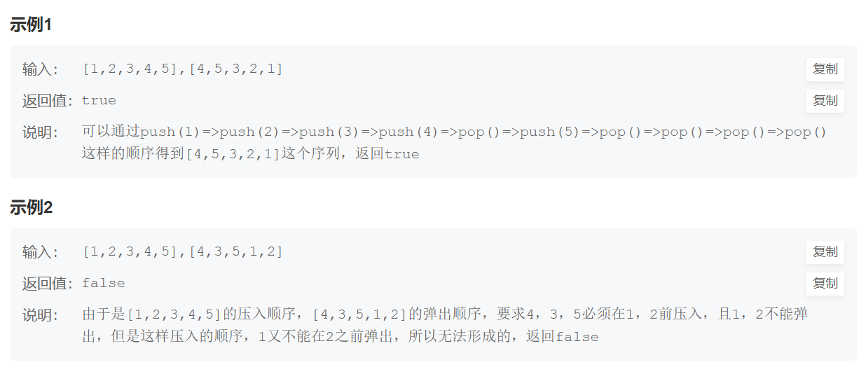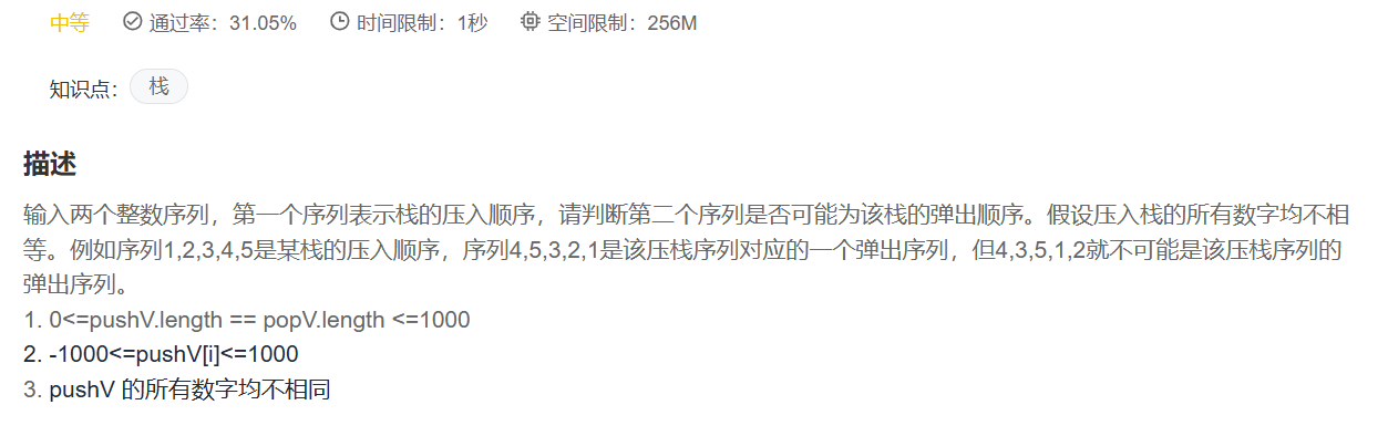 题目链接:栈的压入、弹出序列_牛客题霸_牛客网