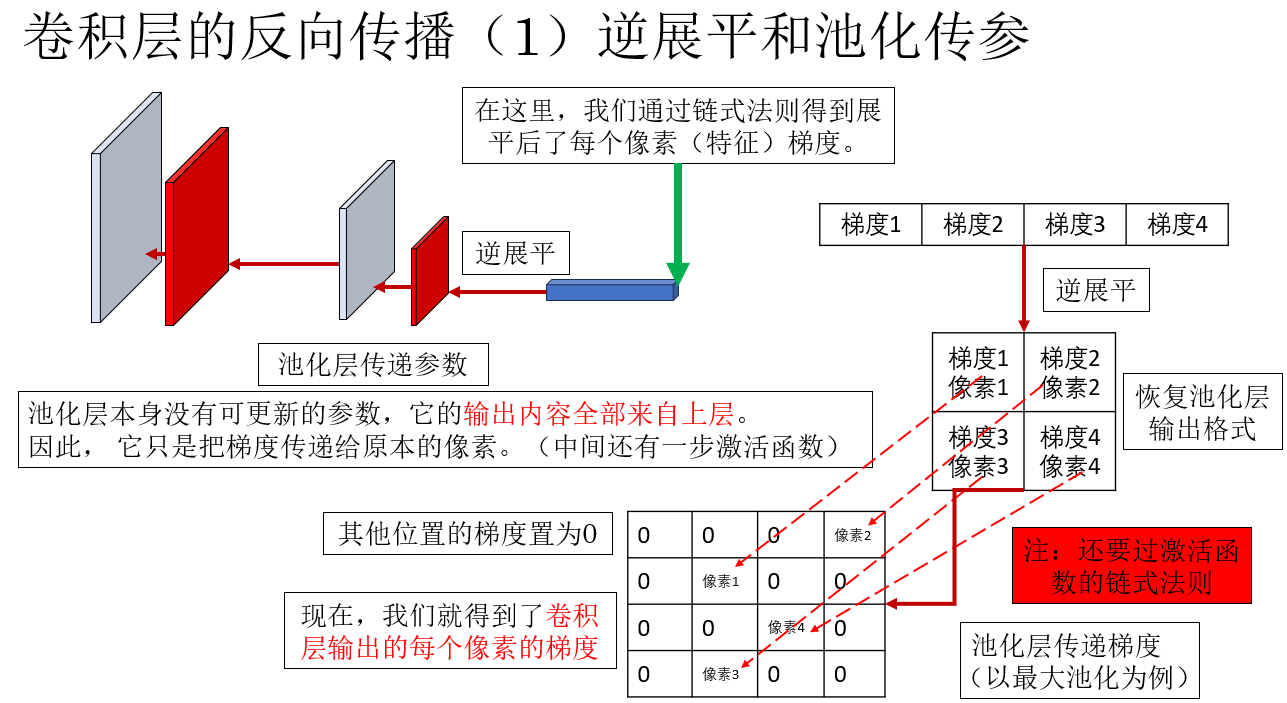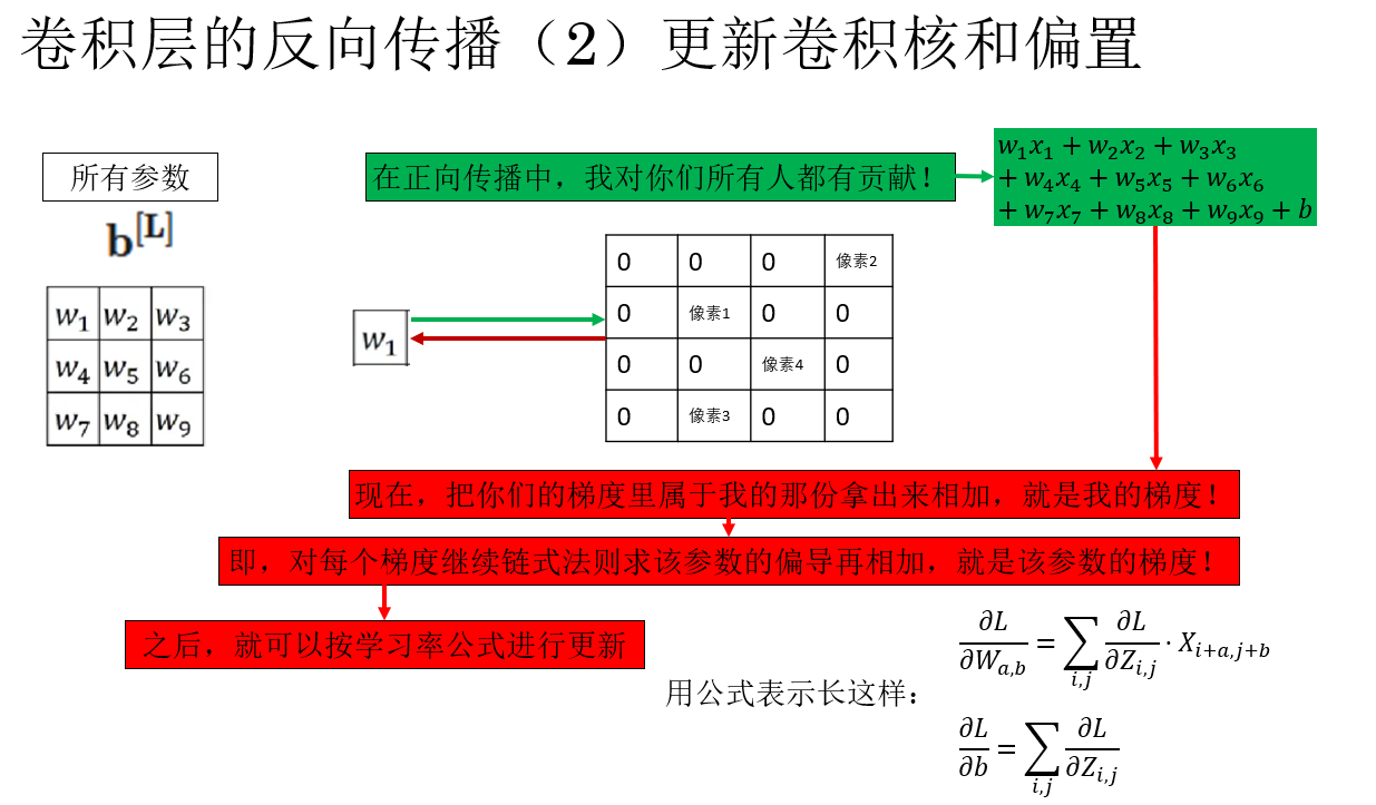 这就是卷积层的反向传播过程,继续反向传播也是同样的道理。