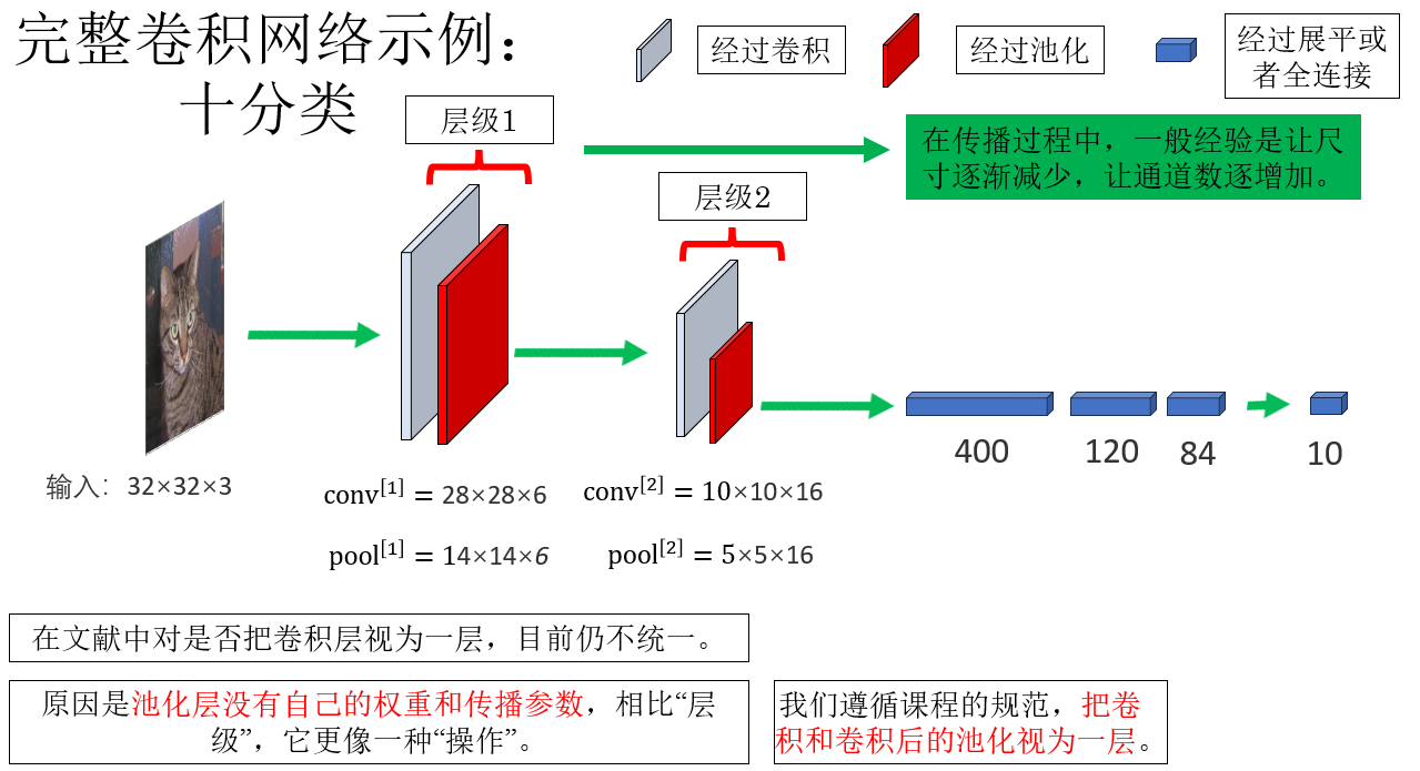 现在,我们先看一个加入了池化层的完整卷积网络,补充一些细节: