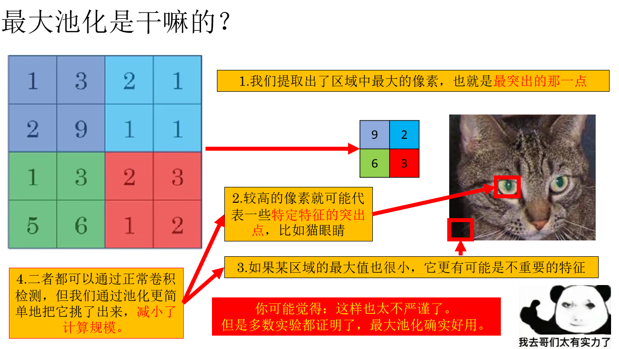 现在我们知道了最大池化怎么用了,问题紧接着就来了,这个操作是用来干嘛的? 我们继续:
