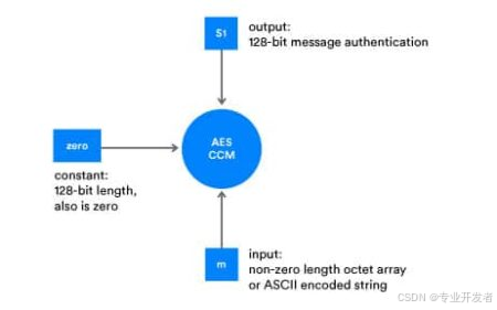 蓝牙网状网络安全定义了一种名为s1的 SALT 生成函数,它基于 AES-CMAC 功能实现。如前文所述,AES-CMAC 有两个输入参数:k和m。但在 SALT 生成场景中,只有输入参数m是可变的,k会固定设为 128 位值0x0000 0000 0000 0000 0000 0000 0000 0000------ 在《蓝牙网状网络规范》中,该值被称为 "ZERO"。
