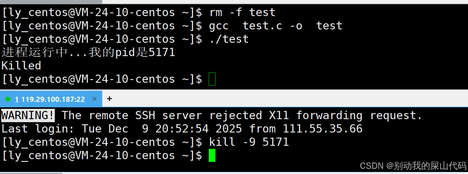运行结果符合我们的预期 程序接收到终止信号 所以 printf("没有接收到9号信号 进程未被终止\n");及其后面的语句没有被执行