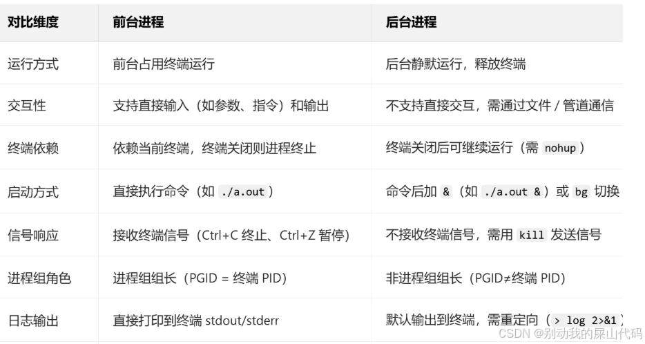 前台进程:会接收终端发出的信号(比如你在终端按快捷键触发的信号)