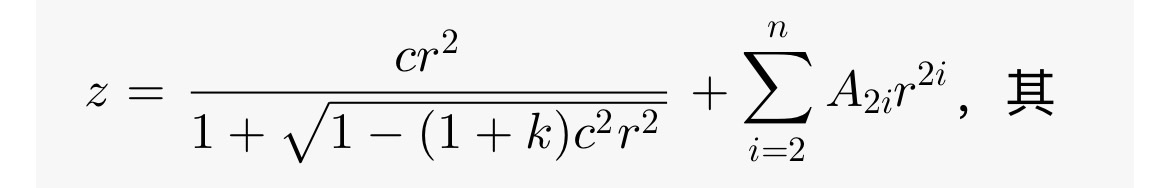 其中z是沿光轴方向的矢高,r是垂直于光轴的径向坐标,c是顶点曲率,k是圆锥系数,A_{2i}是偶次非球面系数。