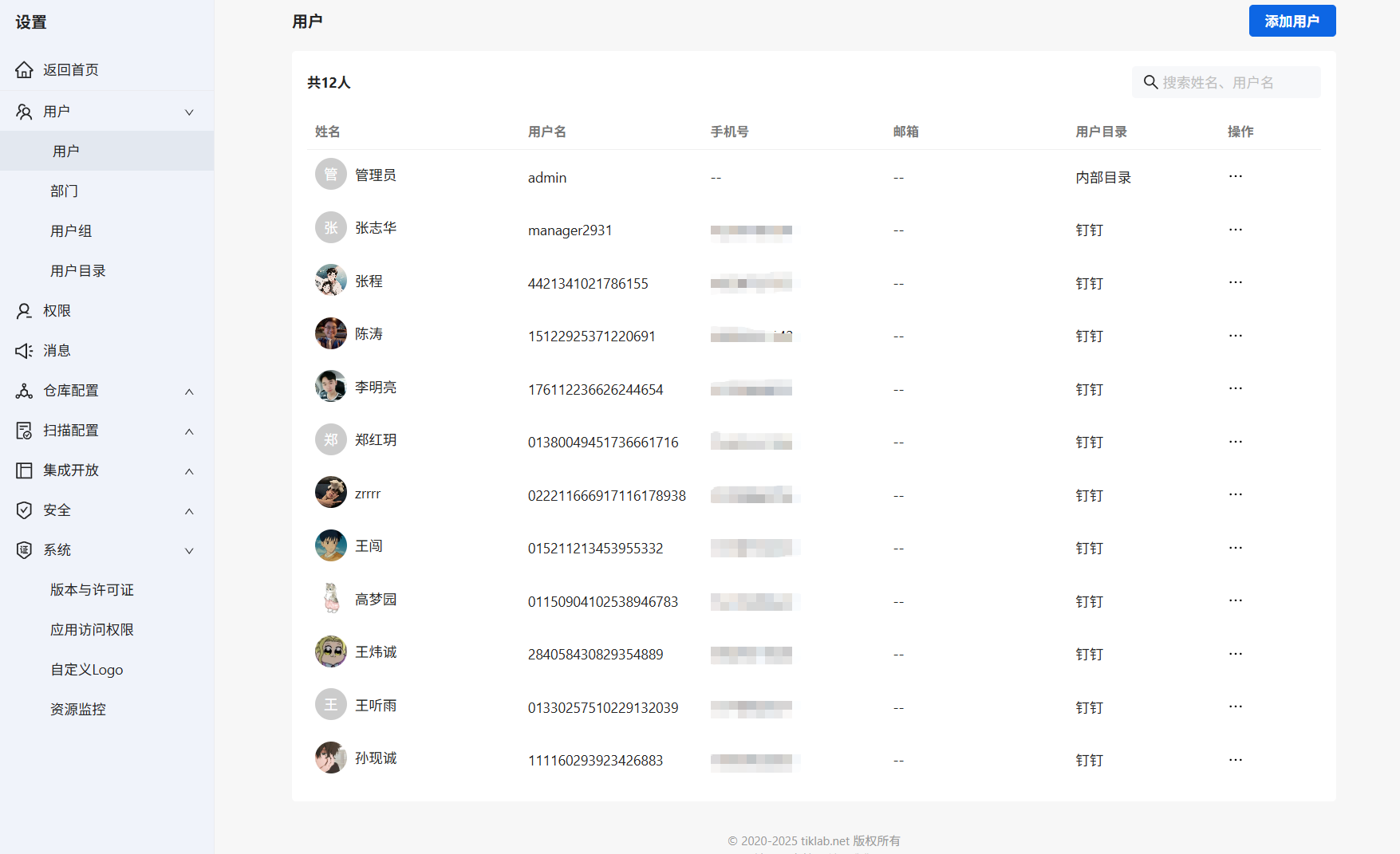 2.也可以点击用户进行查看同步完成后钉钉用户,同步过来的人用户目录会显示钉钉