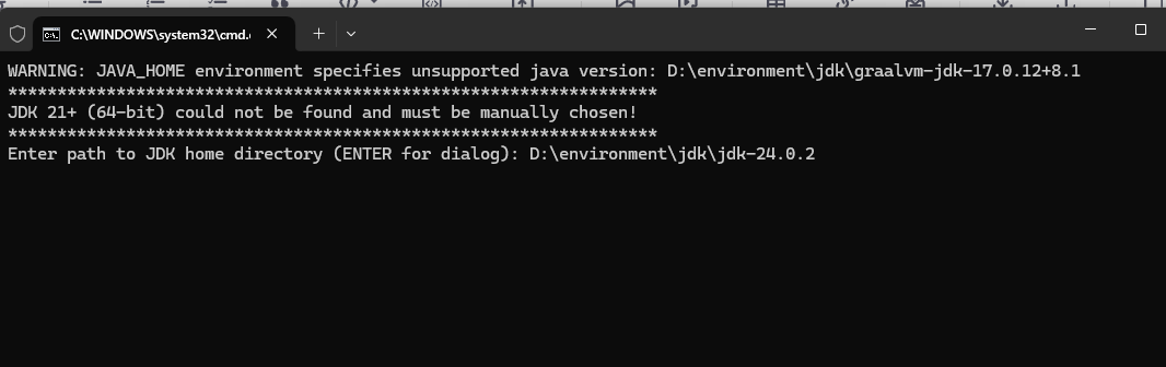 在github里下载后进入文件夹,安装java环境:jdk-24版本