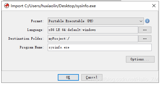 导入要分析的二进制文件,,或者直接将文件拖拽进工程,都选择默认选项就行