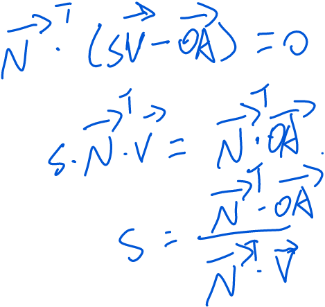 float s = (N(0) * A(0) + N(1) * A(1) + N(2) * A(2)) // (BA X CB) * OA