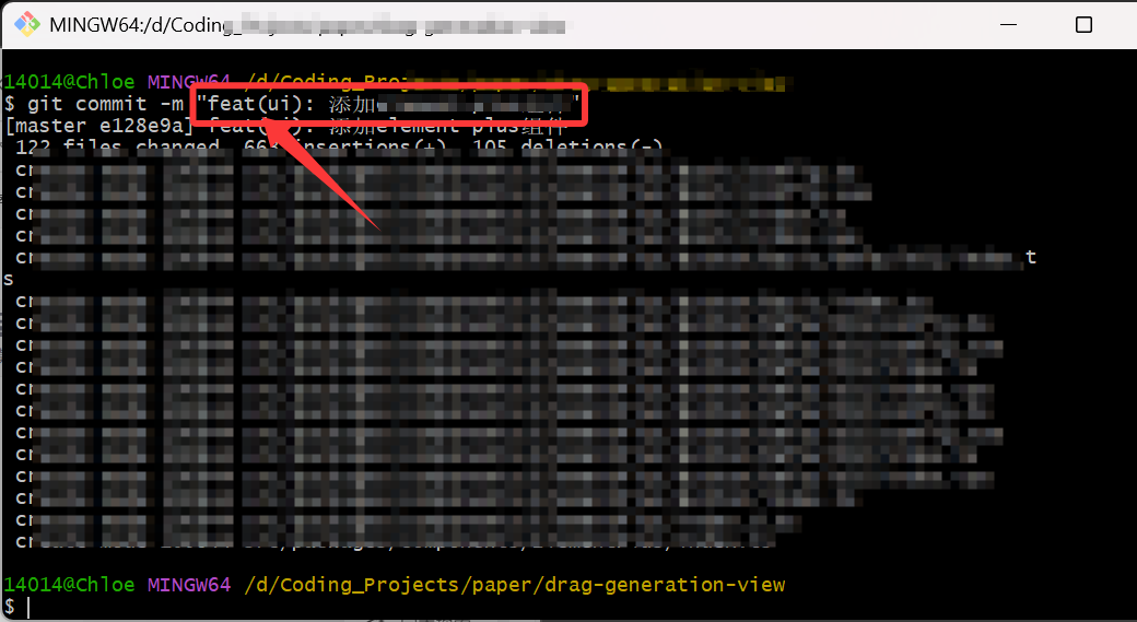 git commit -m "feat(ui): 添加 xxxx库"如果这是修复某事改动,应使用