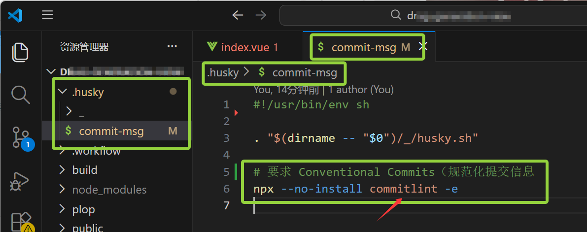 查看项目中的 husky/commit-msg 文件中,commitlint 要求规范提交信息