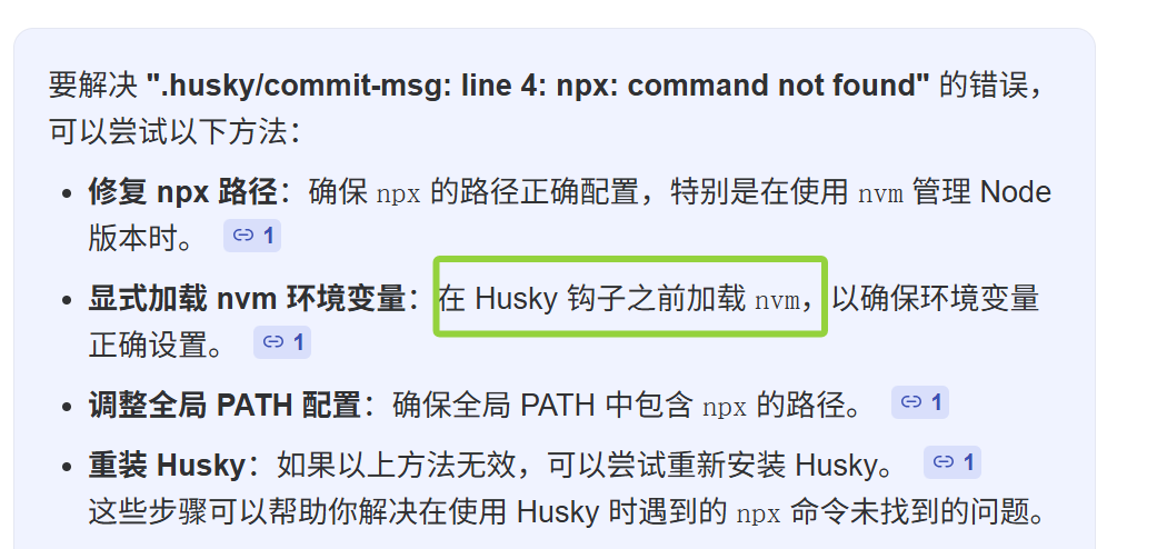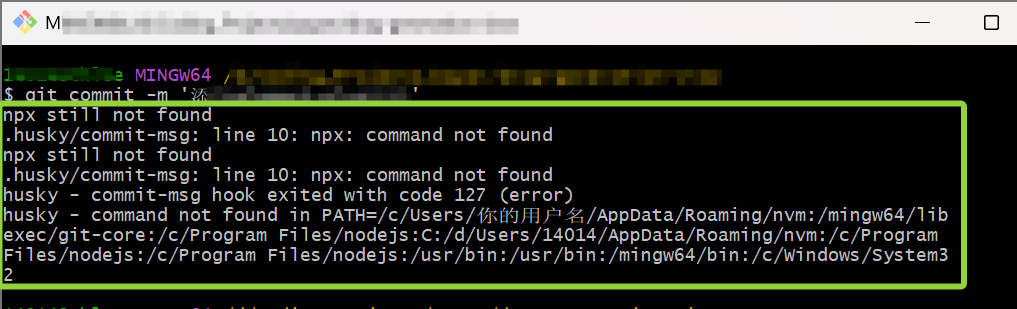 背景:使用 nvm 管理 node 版本时,用 git bash 进行 git commit -m ''代码提交时,出现 husky 报错