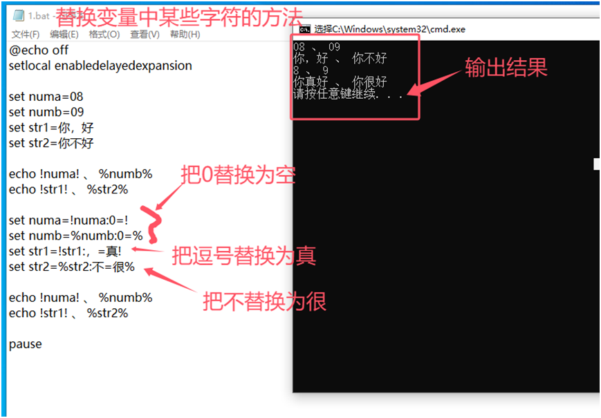 set str=%str: =% 将变量str中的空格替换为空,并将结果赋值给str