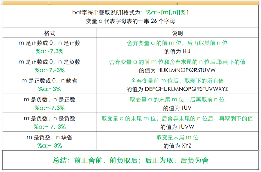 2、bat字符串截取说明、变量或参数属性截取说明