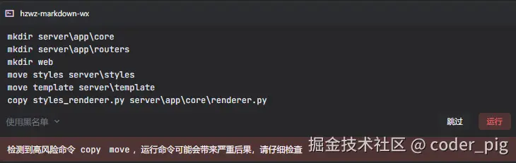 对于 "高风险命令 " (比如这里的 move ),会停止往下执行,等待用户 审核确认。😮 Wow Human in Loop~