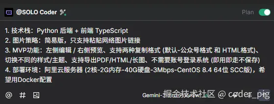 - 【 TRAE SOLO 】应该是内置了 产品开发流水线 相关的 完整工作流 ,🤣 2333,我精心准备的 "全栈开发落地方方论" 还没开始实施,它就把前面这两项干完了。