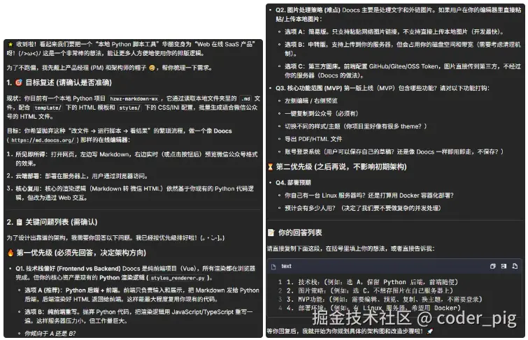 这只是个 "方向 ",还不是 "可执行需求 ",通过下述 Prompt 让 Trae 引导我们进行 "需求澄清":