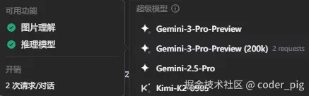 😏 然后,前阵子 "量大管饱 " 的 Trae 发布公告:"因服务中断,停止提供 Claude 模型的访问 ",巧了,刚好换上 Gemini 3: