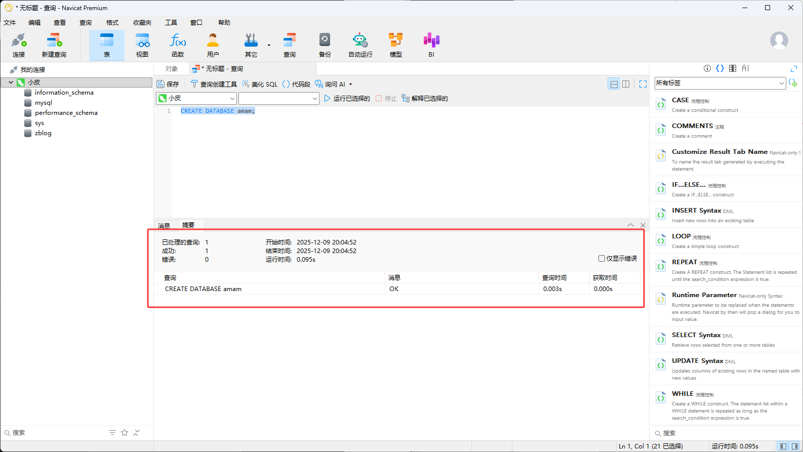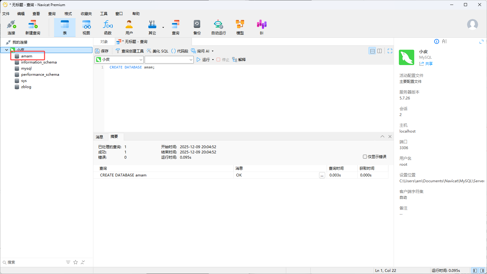 -- 3. amam:你指定的数据库名称,是这个"文件夹"的专属名字,MySQL会按此命名创建