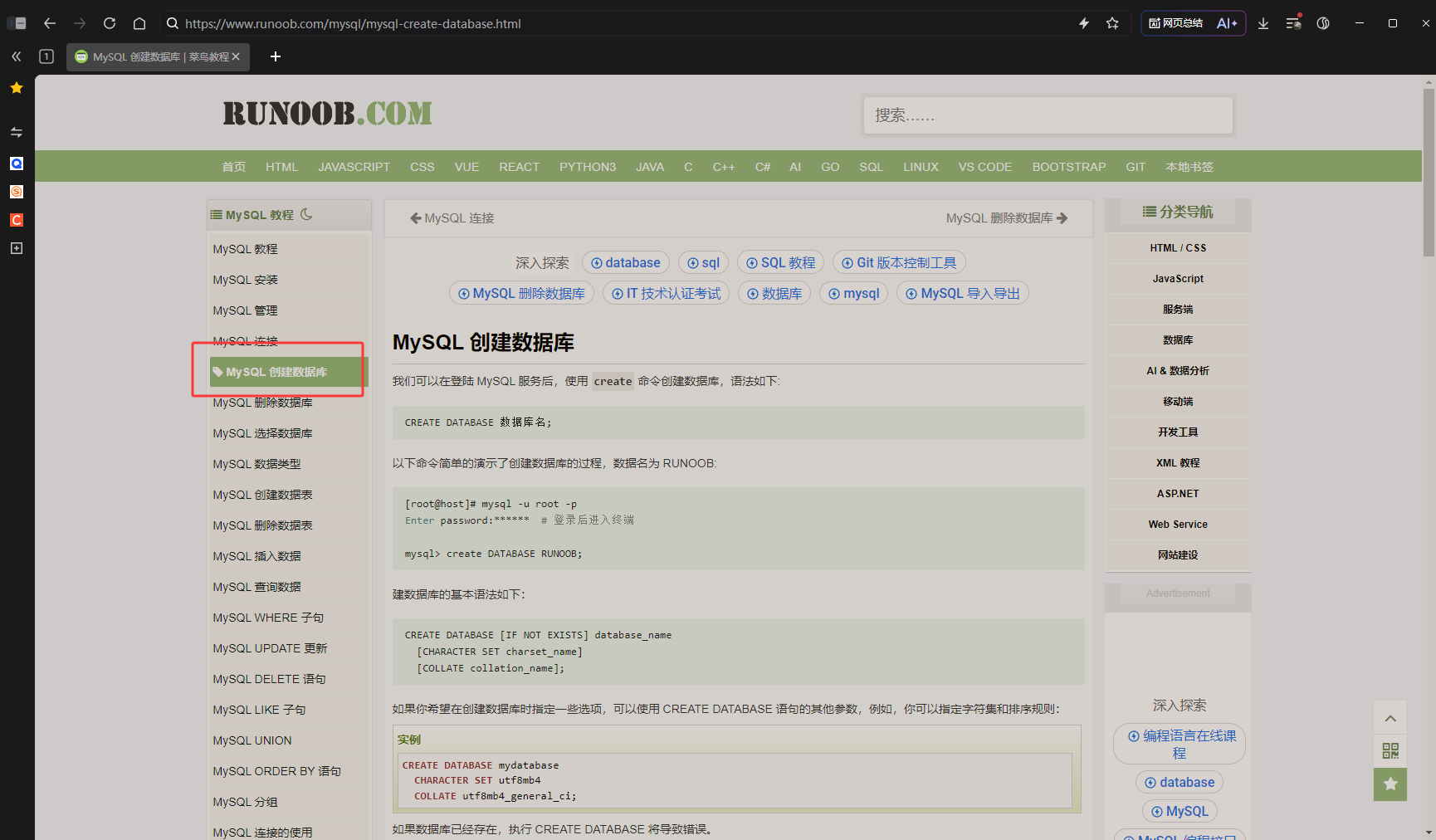 -- 1. CREATE:核心操作关键字,相当于"新建",告诉MySQL要执行"创建"操作
