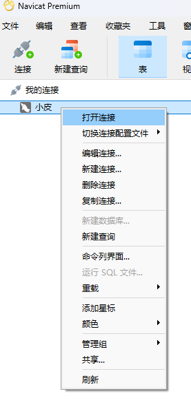 然后打开Navicat,如果是灰色的说明没有连接到MySql,这里右击点击打开连接