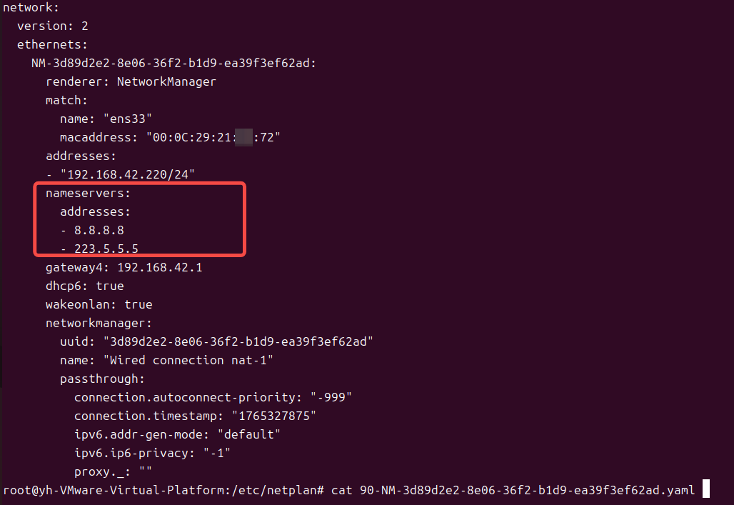 netplan apply # 应用配置