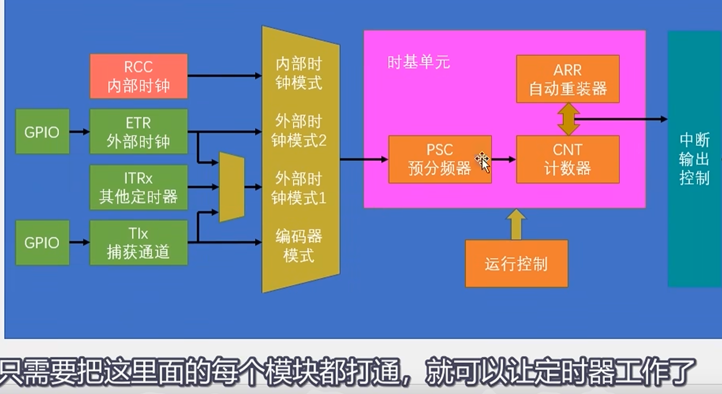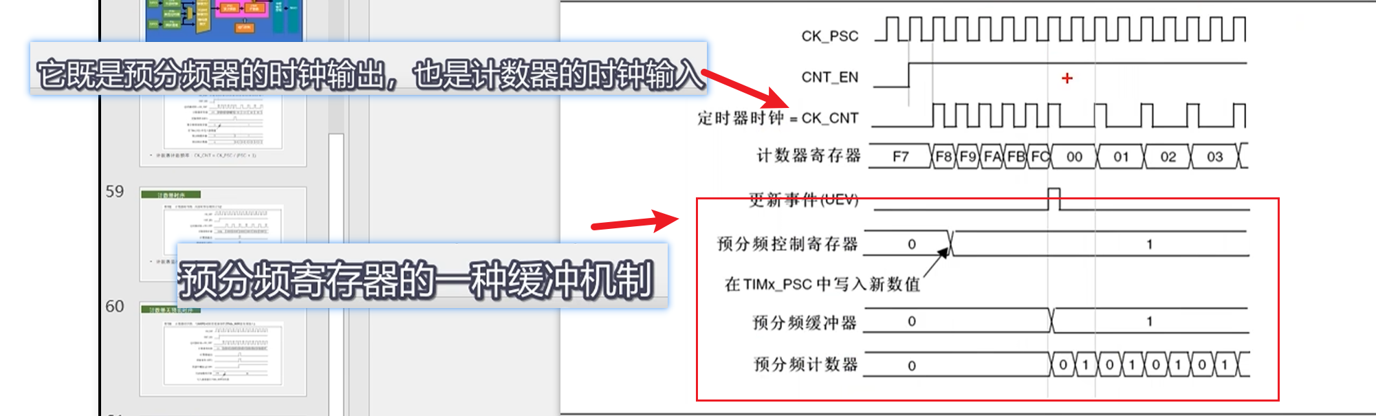 - 预分频器:先把输入的高频时钟(比如 72MHz)"分频" 降低频率(比如 72MHz÷72000=1kHz);