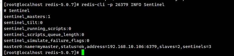 sentinel monitor mymaster 192.168.10.23 6379 2 #84行,修改 指定该哨兵节点监控