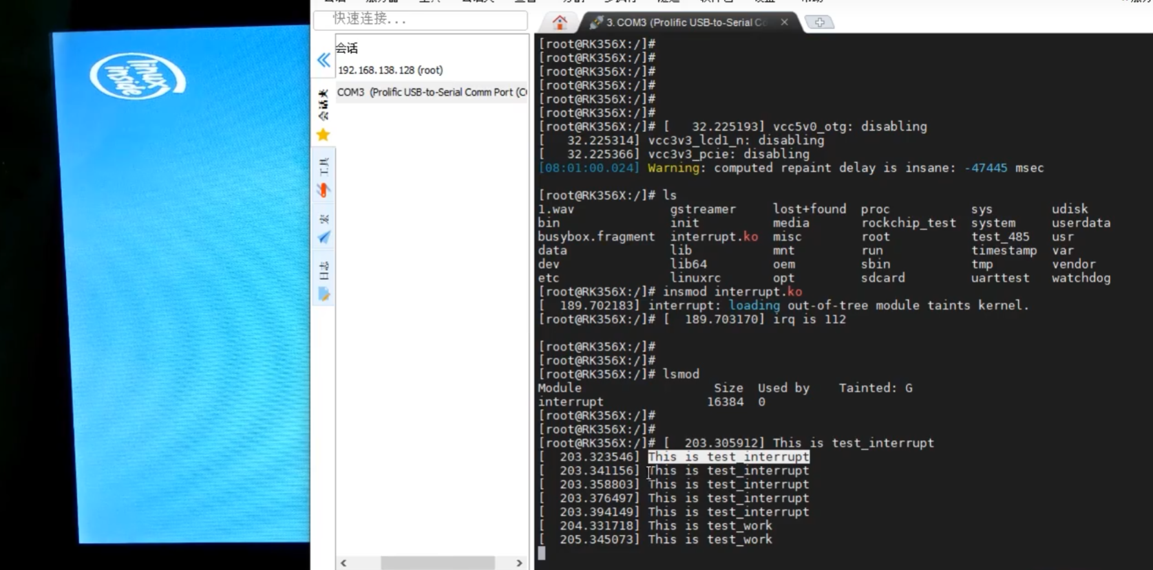 只打印两次test_work的原因:同一个工作项在未执行完成时,重复调用schedule_work()会被忽略