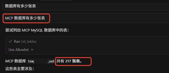 **tips.**有时候会调不到MCP,所以我这边在最前面打了MCP三个字,让他主动去用MCP的方式查询