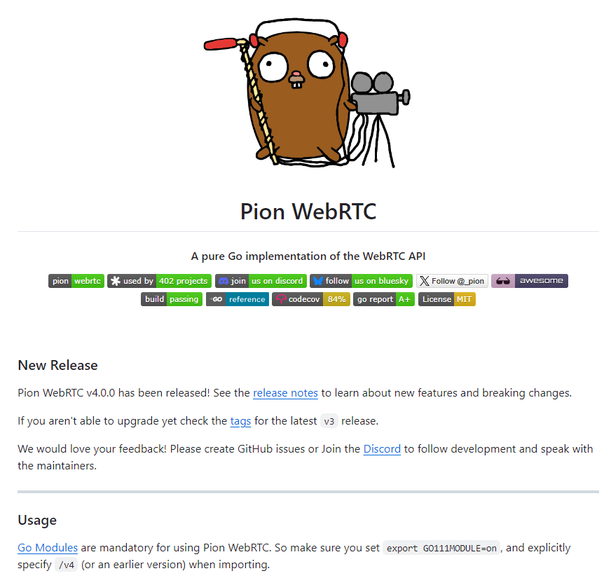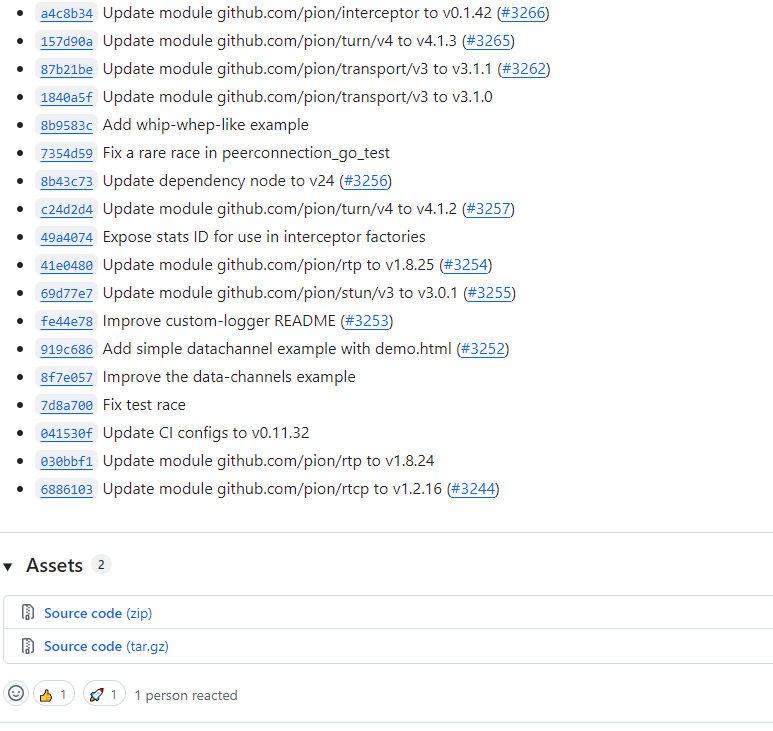 2025 年 12 月 5 日,pion/webrtc 发布了最新版本 v4.1.7。该版本在稳定性、性能和协议兼容性方面都有明显提升,同时对多个依赖模块进行了更新。本次更新的重点包括对 RTP、ICE、DTLS、SRTP 等模块的升级与新特性支持,以及对测试稳定性的改进。