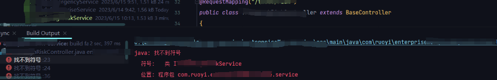 这个错误的核心问题是编译器在指定包下找不到XxxController这个类 / 接口,以下是按优先级排序的排查和解决方法(结合若依 (RuoYi) 框架的特性):
