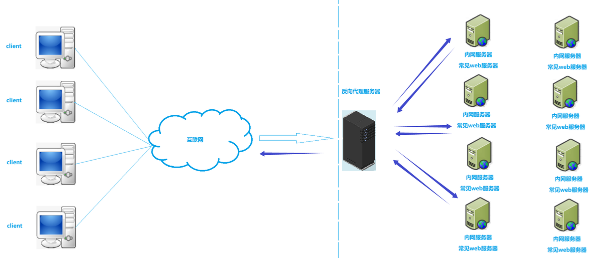 反向代理服务器是⼀种⽹络架构模式,其作为Web服务器的前置服务器,接收来⾃客⼾端的请求,