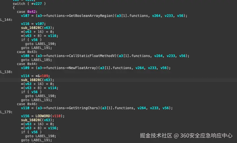 继续通过修复oncreate函数追踪分析13353c发现存在jni映射