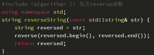 可以直接使用reverse函数来翻转字符串,在 C++中该函数在algorithm库中,下面是一个实例: