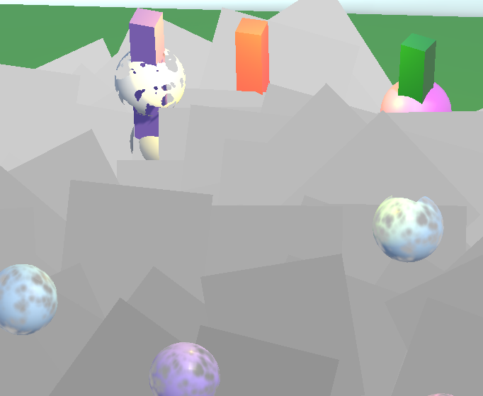 然后用这个 shader 创建专门的材质,应用到粒子系统。我们还没有改动 shader,因此效果还和之前一样。可以设置粒子系统让其发射 mesh 粒子,如果粒子系统和材质都开启了阴影,还可以渲染粒子的阴影。由于粒子系统使用过程化的绘制,因此 GPU instancing 没有工作,实际上粒子的 mesh 被合并成一个 mesh 进行渲染,就像粒子片一样。