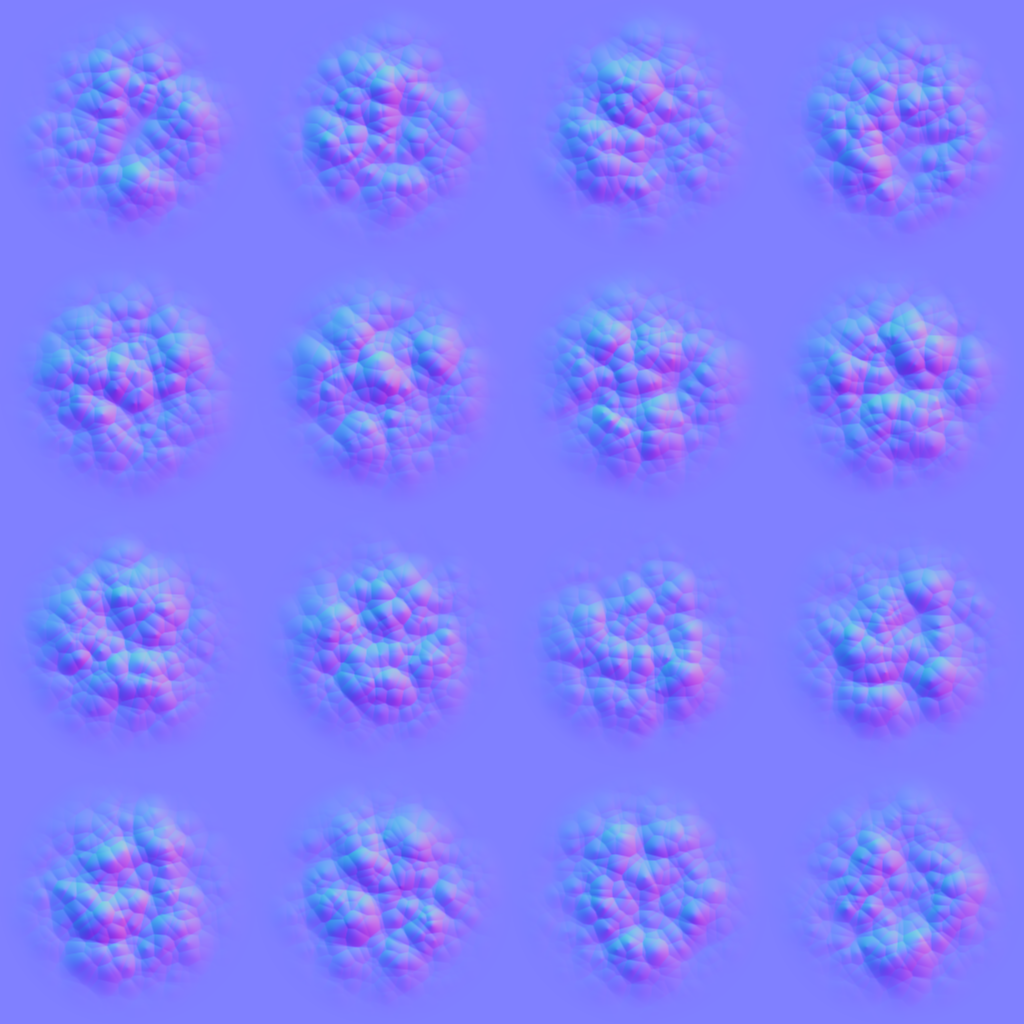 我们需要一个变化平滑的扰动向量来实现扰动效果。下面是一张简单的圆形粒子的扰动图,下载并导入我们的项目中。