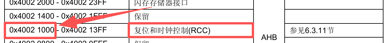 复位和时钟控制(RCC) 的基地址 = ((0x40000000UL+ 0x00020000UL) + 0x00001000UL)) = 0x40021000UL