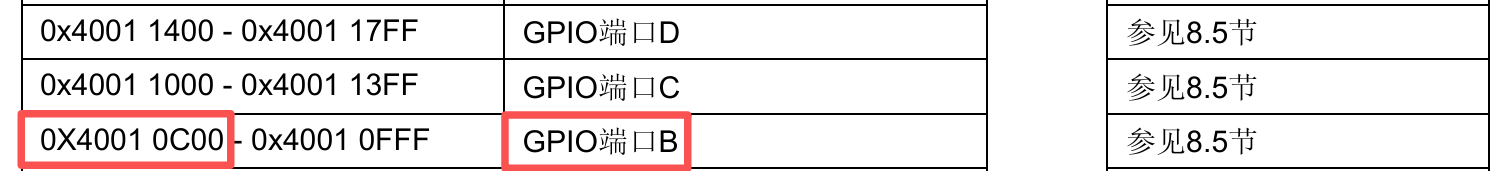 GPIO端口B的基地址 = ((0x40000000UL + 0x00010000UL)+ 0x00000C00UL) = 0x40010C00UL